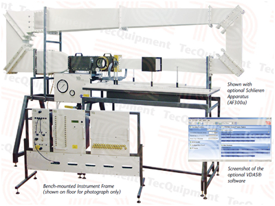 本间歇式超音速风洞实验系统由英国TQ公司生产(TecQuipment Ltd.)。主要用于研究亚音速、超音速气流在喷嘴内的动力特性,以及在二维空气流动状态下的模型气动特性的教学实验设备。